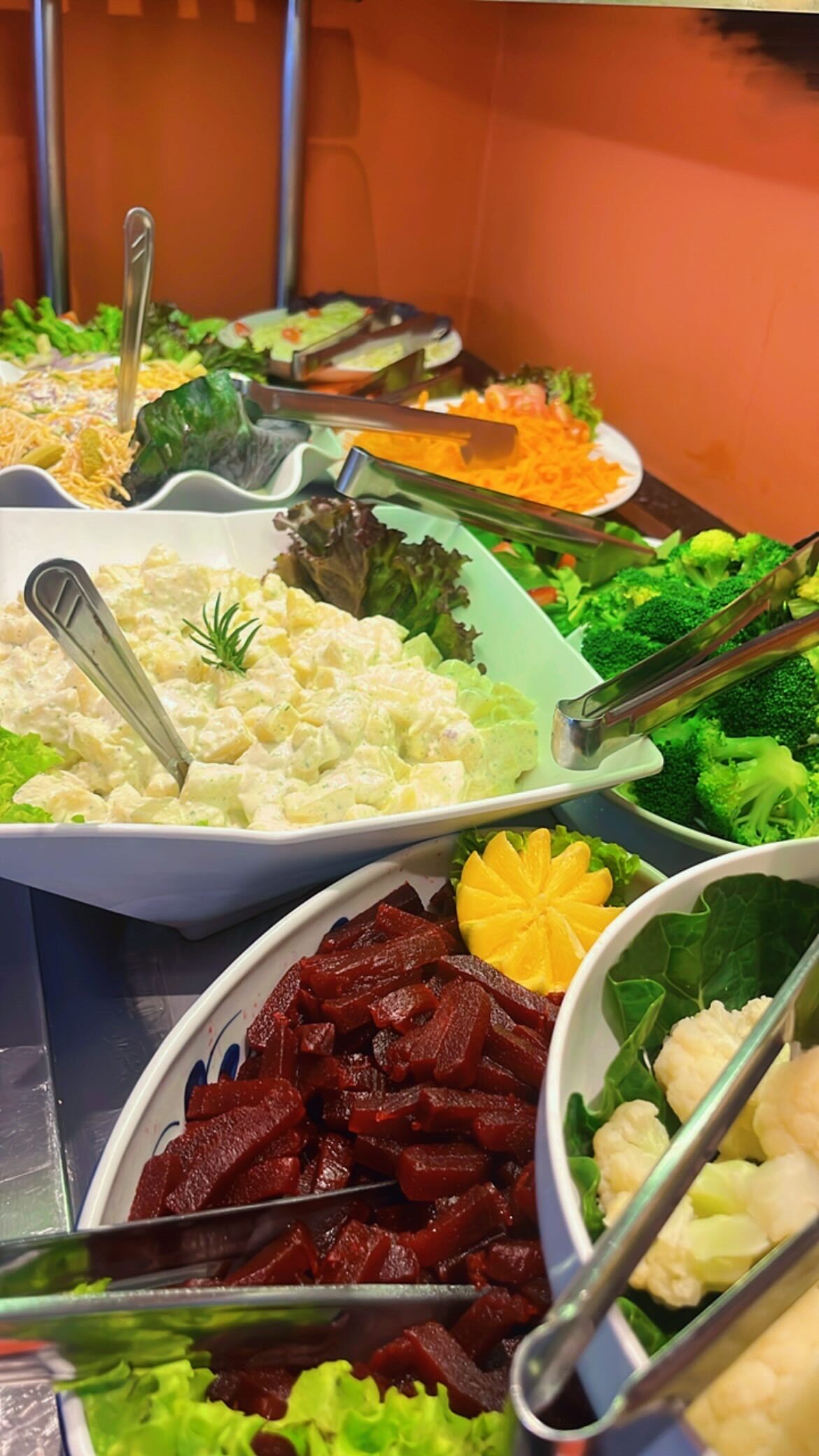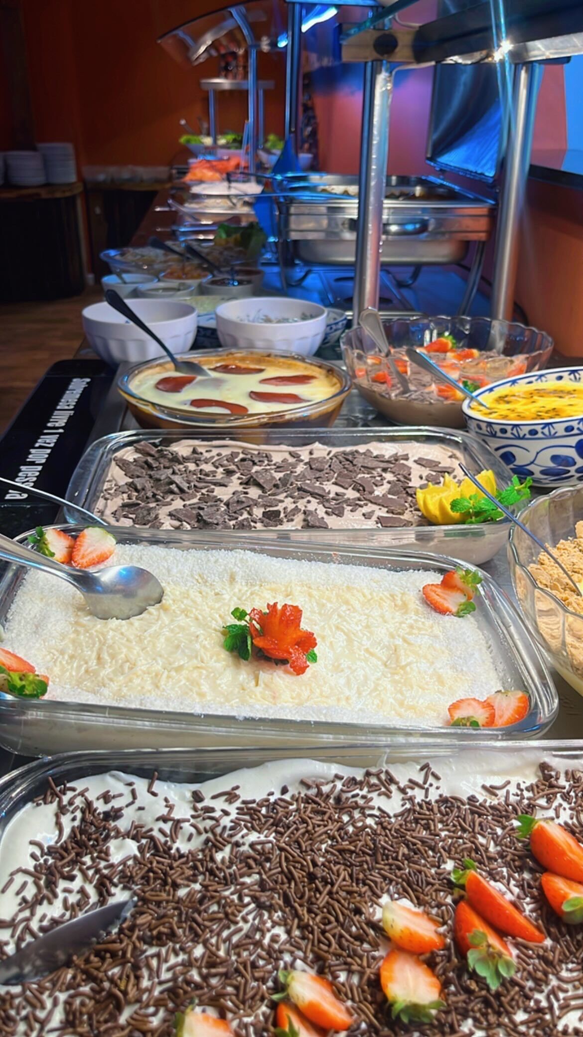 Saboreie uma seleção deliciosa com saladas frescas, pratos quentes, grelhados feitos na hora e sobremesas irresistíveis — tudo isso por um preço acessível.